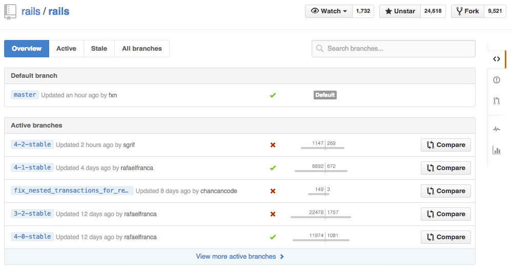 From here you can access the compare page or delete a branch with a click of a button.