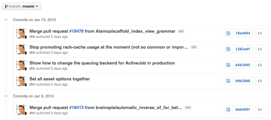 Read more about the differences between commits views.