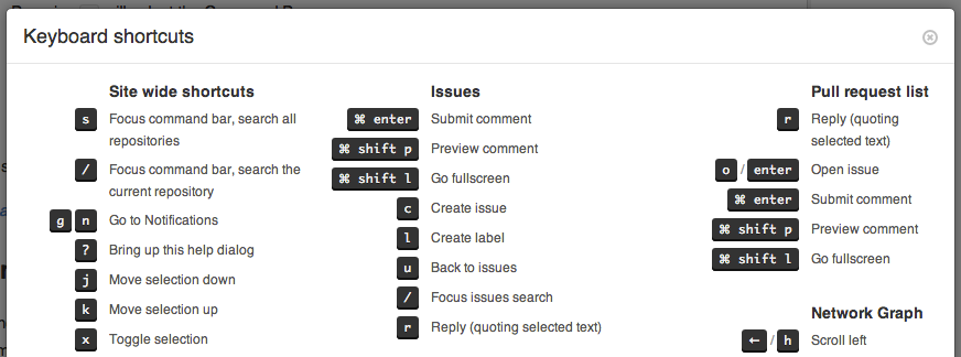 A collection of cool hidden and not so hidden features of Git and GitHub. This cheat sheet was inspired by Zach Holman's Git and GitHub Secrets talk at Aloha Ruby Conference 2012 (slides) and his More Git and GitHub Secrets talk at WDCNZ 2013 (slides).